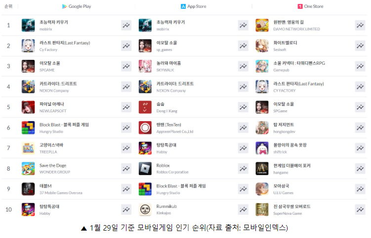 ◎ 설날 특수 누린 '로블록스', 구글 매출 5위 유지