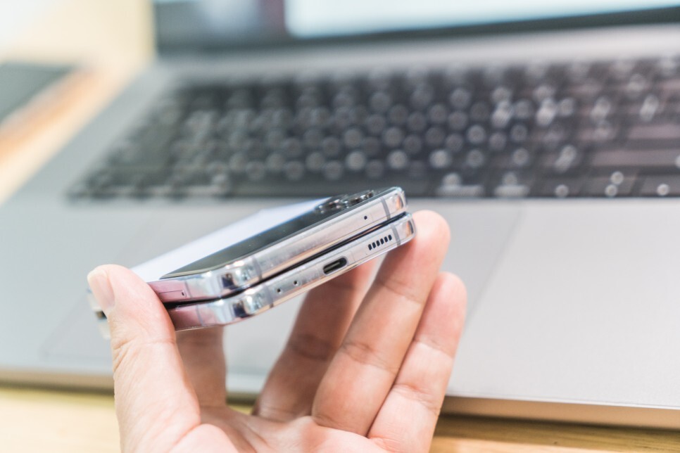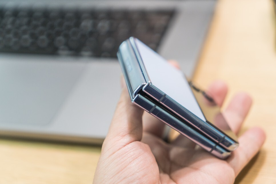 새로운 흰지 디자인에 대한 이야기도 나오고 있습니다. 디스플레이 일부분이 휴대폰 내부로 들어가는 디자인으로, 접히는 부분이 내부에서 넓게 휘어서 기존보다 접히는 부분의 주름을 훨씬 줄일 수 있다고 합니다. 실제로 제품으로 구현이 가능할지 궁금해지는 부분입니다.