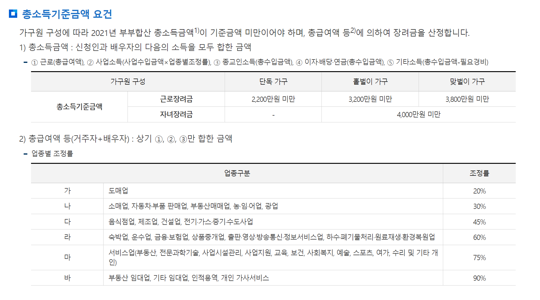 | 총소득기준금액 | 2,200만원 미만 | 3,200만원 미만 | 3,800만원 미만 |