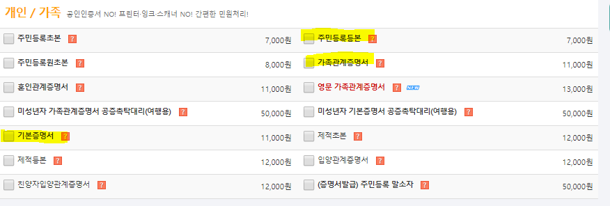 부/모 각각의 가족관계증명서
