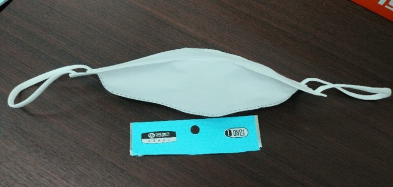 3단 접이식 비말 차단 마스크엔 탄력이 좋은 일체형 끈으로 만들었네요