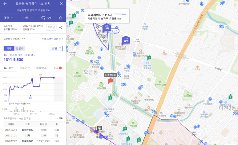 송파레미니스1단지는 37평형이 14억대에 근접하고 있으며