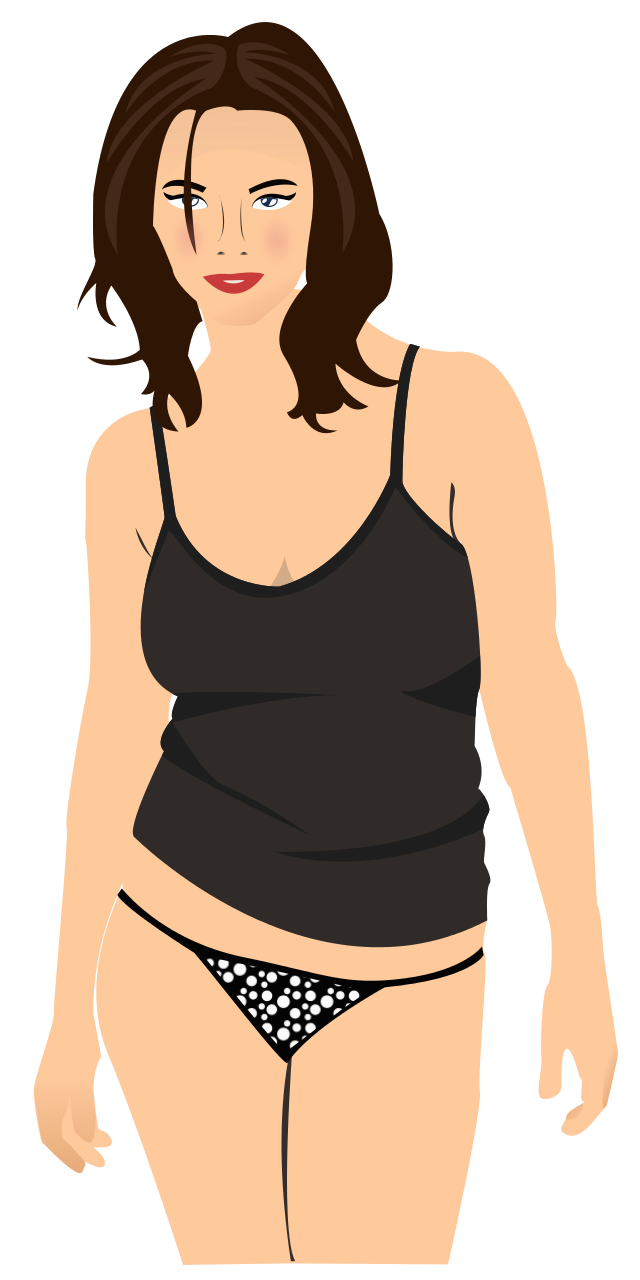 - 스트링 비키니(string bikini): 2개의 삼각형 조각이 사타구니에 연결되어 있지만 옆 부분은 그렇지 않고 얇은 줄이 허리를 감싼다. 일반 비키니보다 더 얇고 노출이 심한 편이다.