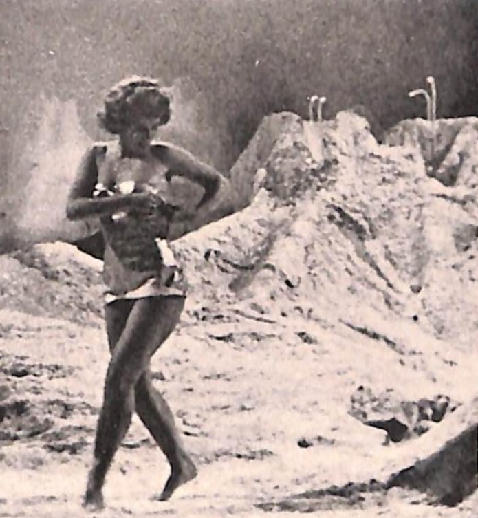 라켈 웰치가 1966년에 개봉한 영화 "공룡 100만년"에서 선보인 가죽 비키니는 세계에서 가장 상징적인 비키니 사진을 찍었고 포스터 이미지는 영화 역사상 상징적인 순간이 되었다.[112] "인류의 첫 비키니"라고 광고한 영화 "공룡 100만년"에 등장한 그의 사슴 가죽 비키니는 나중에 1960년대의 확정적인 모습으로 묘사되었다.[113] 가죽 비키니를 입은 그의 역할은 웰치를 패션 아이콘으로 만들었고[10] 비키니를 입은 그녀의 사진은 베스트셀러 핀업 포스터가 되었다.[113]