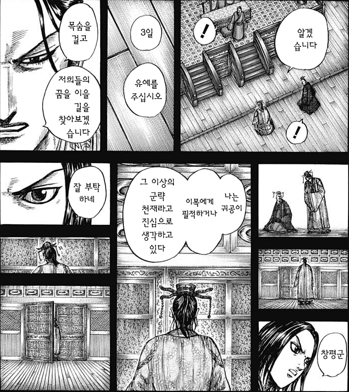 몇일전 창평군은 왕에게 중화통일의 길이 부서졌다 말한다