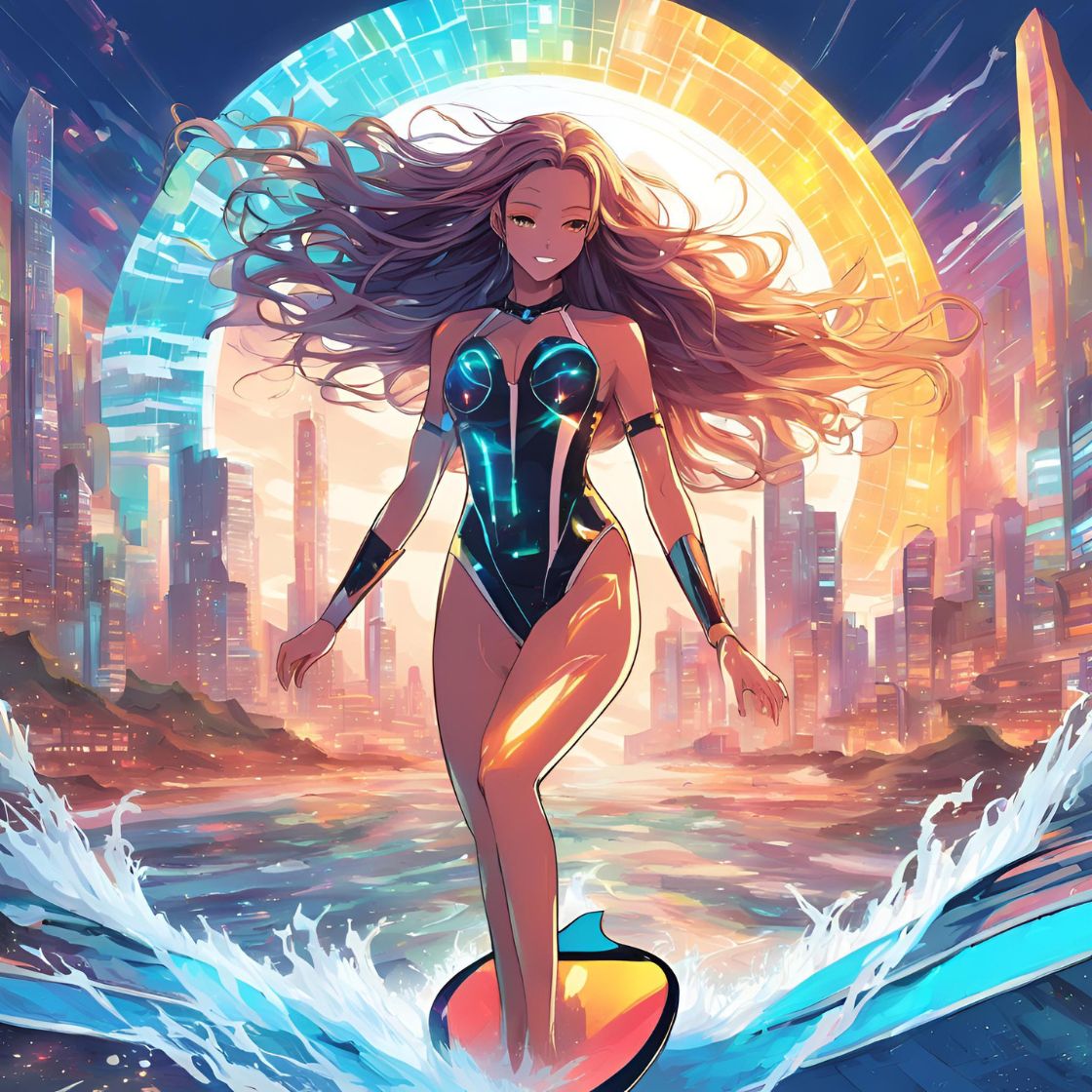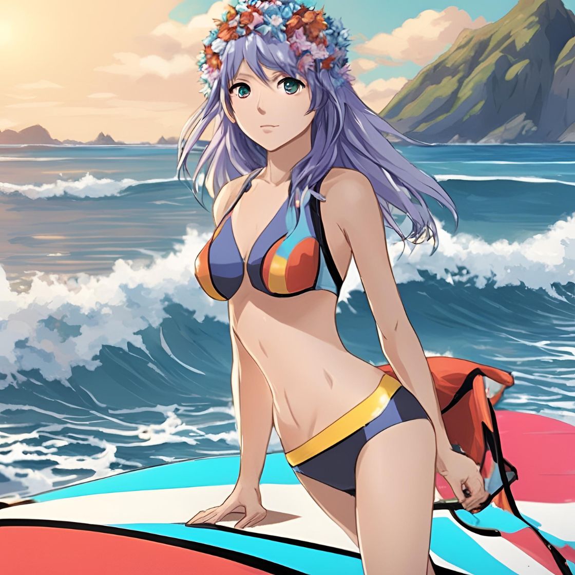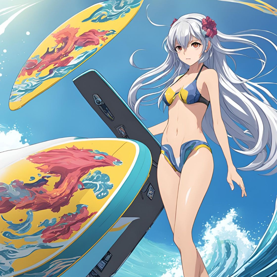서핑하는 애니 캐릭터: 용장과 맹장의 파도 정복기! ♀️