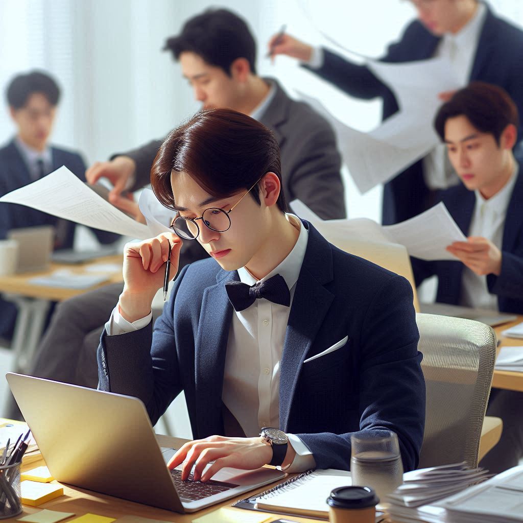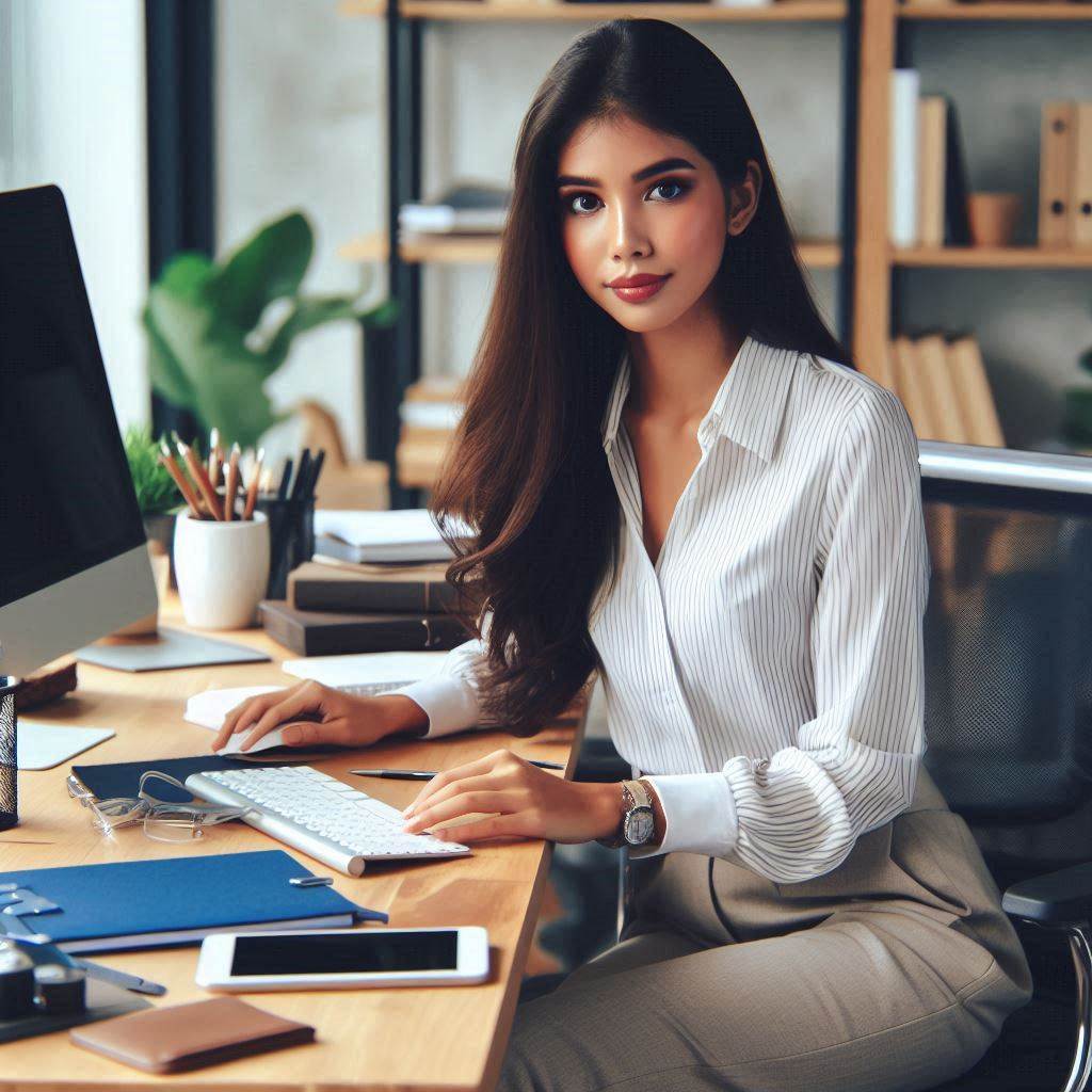 - 가장 기본적인 오피스룩으로, 깔끔하고 신뢰감을 주는 인상을 줍니다.