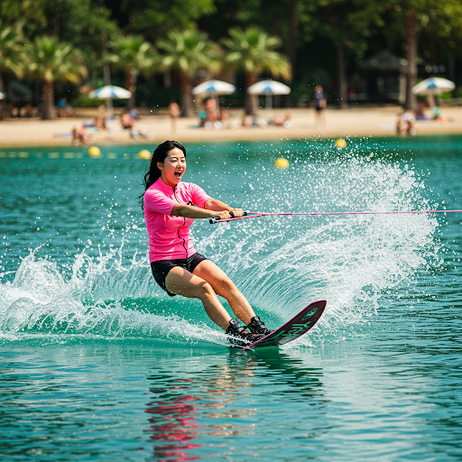 - 기본 스타일: 래쉬가드와 같은 컬러나 비슷한 톤의 워터 레깅스나 보드숏을 매치하여 깔끔하고 스포티한 룩을 연출할 수 있습니다.