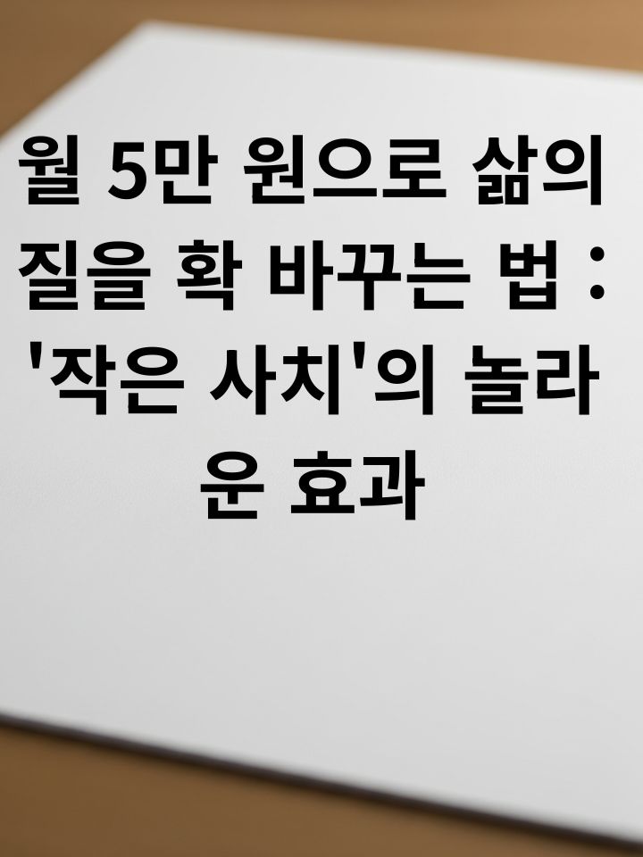 매일 반복되는 일상에 지쳐있지는 않으신가요? 빡빡한 예산 속에서 나를 위한 작은 행복을 찾는 것은 사치처럼 느껴질 때가 많습니다. 하지만 이제 그런 생각은 잠시 접어두세요. 월 5만 원이라는 작은 예산으로도 삶의 만족도를 극대화할 수 있는 놀라운 방법들이 있습니다. 이 글을 통해 지친 당신의 일상에 활력을 불어넣어 줄 **'작은 사치'**의 비밀을 함께 파헤쳐 보겠습니다.