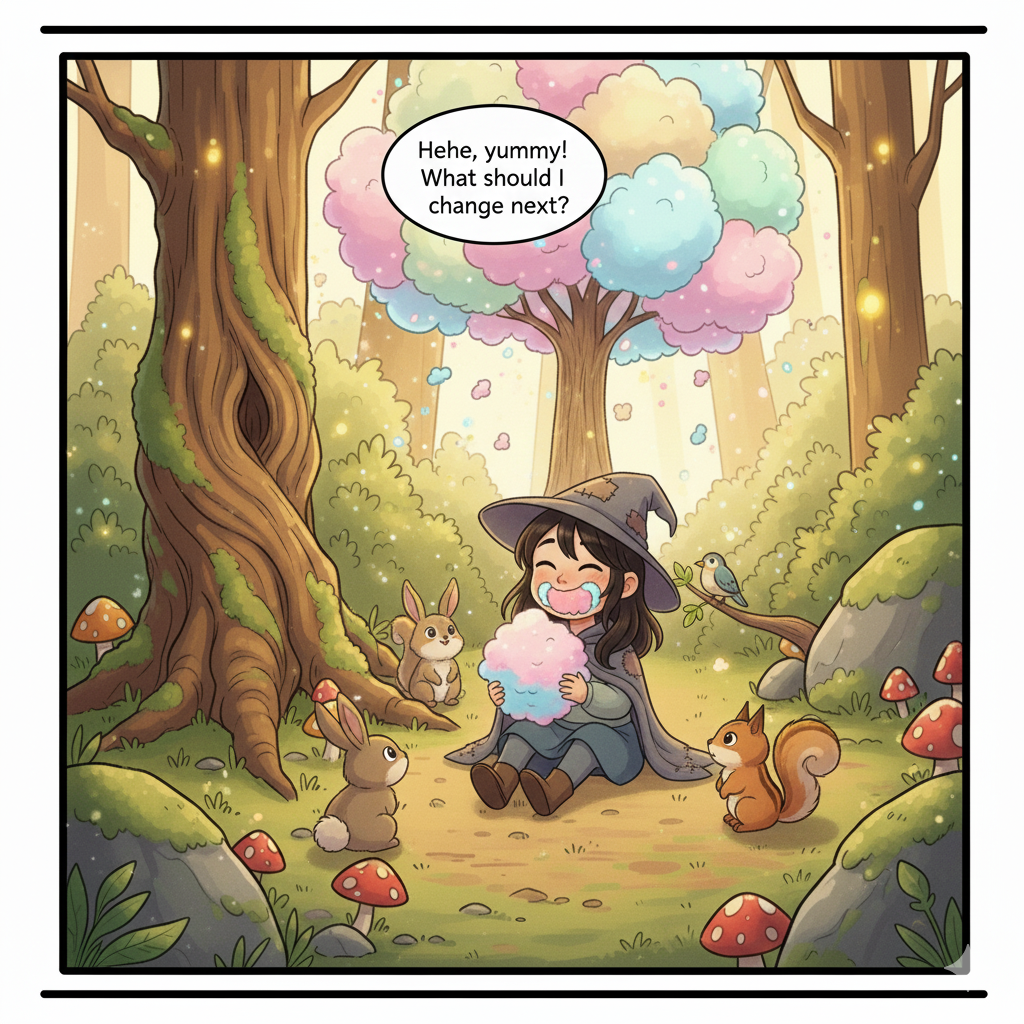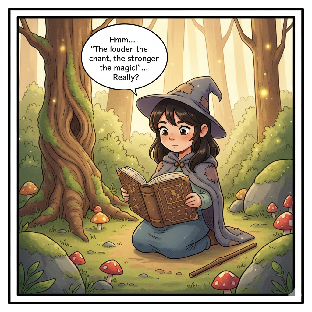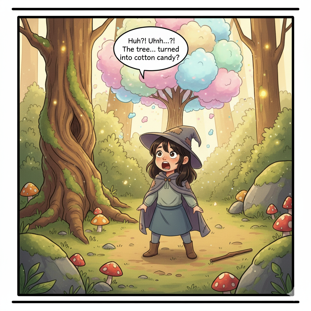 4 cut cartoon 꼬마 마법사의 첫 마법 (The Little Wizard's First Spell)