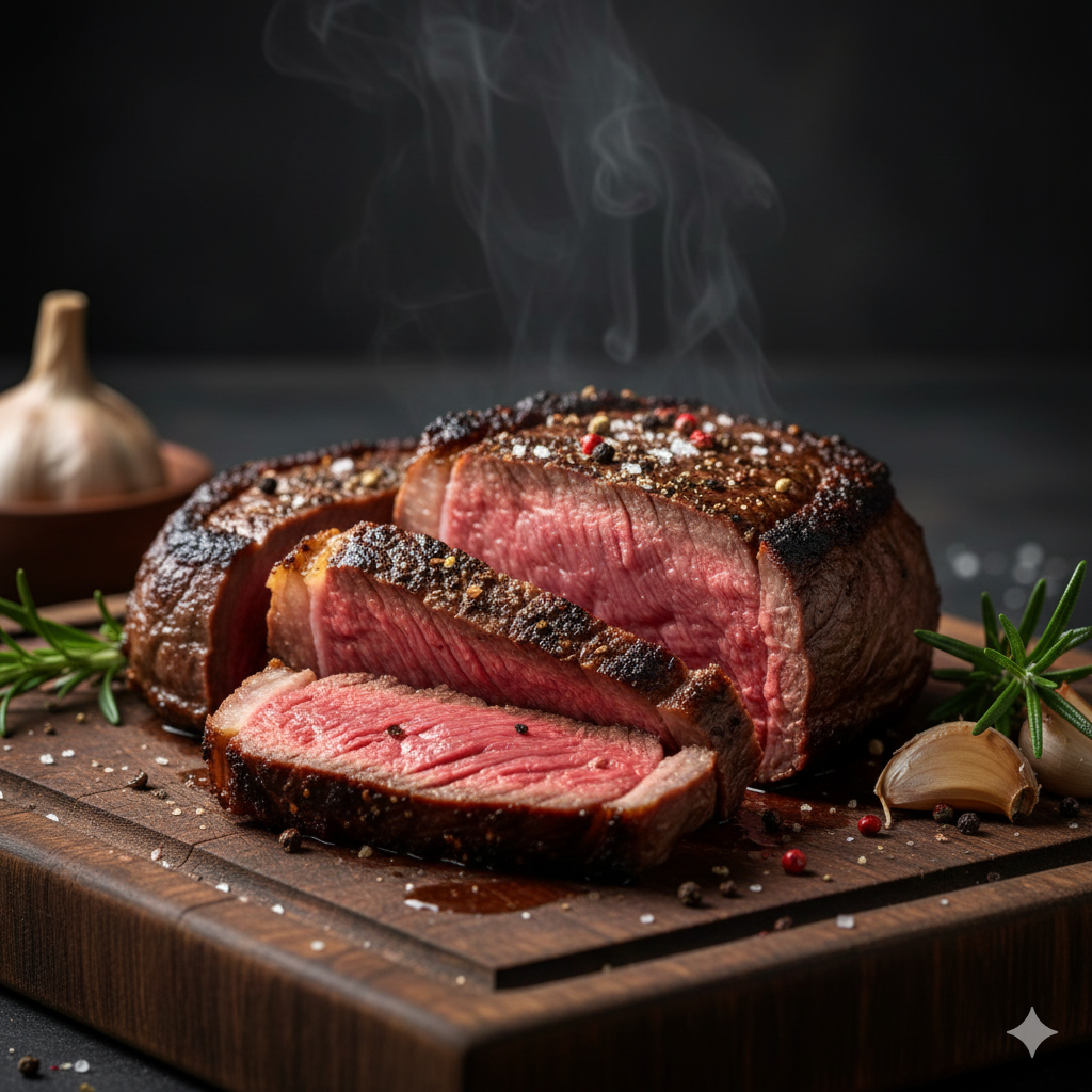 - 리버스 시어링: 고기가 아주 두껍다면 오븐이나 에어프라이어에서 저온으로 먼저 속을 익힌 뒤 나중에 겉면만 태우듯 굽는 방식이 가장 이븐하게 나옵니다. (요리 전문가들이 추천하는 방법입니다.)