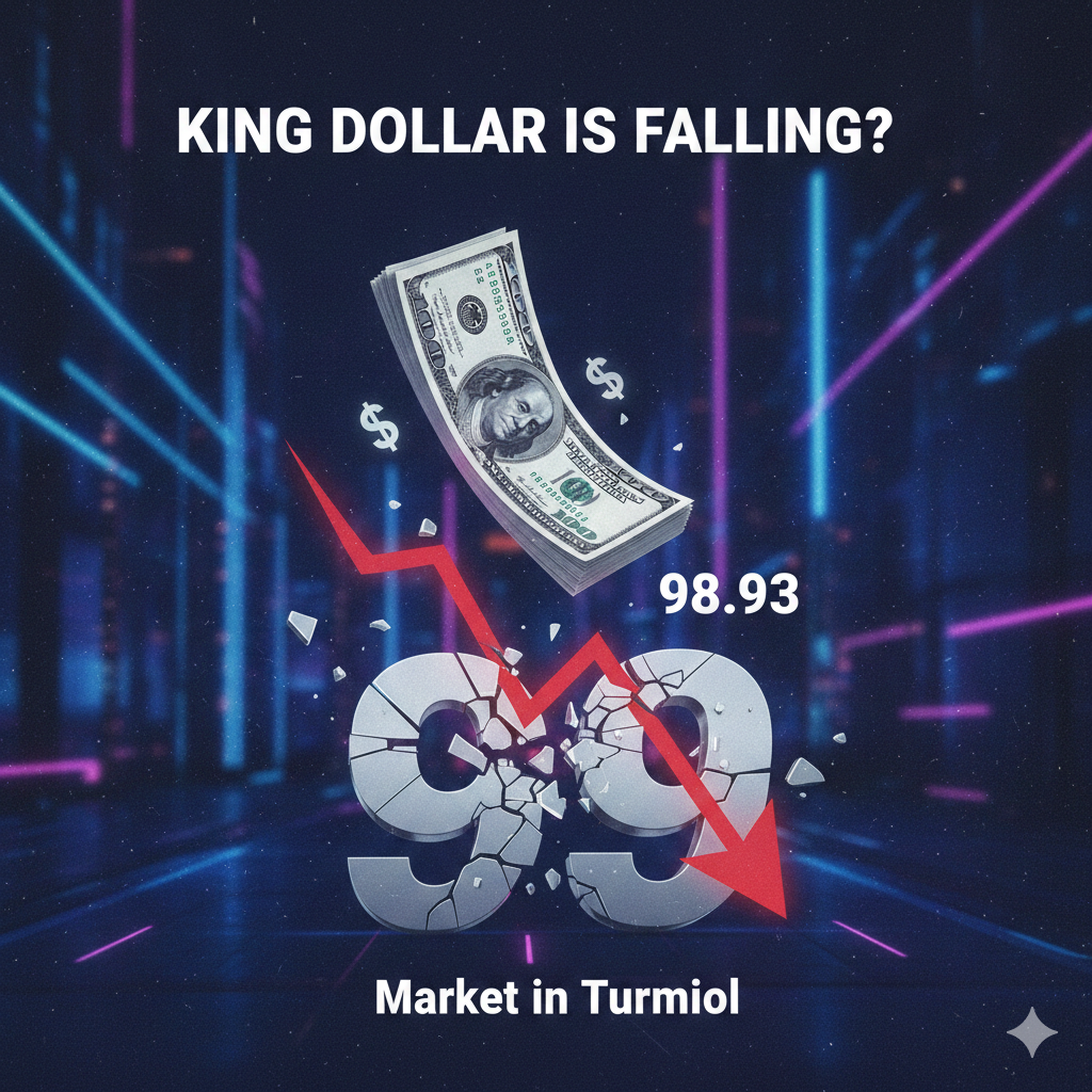 최근 달러 지수(DXY)는 100이라는 심리적 마지노선을 하향 돌파하며 투자자들 사이에서 긴장감을 고조시키고 있습니다. 불과 얼마 전까지만 해도 110선을 위협하며 '킹달러'의 위용을 과시하던 모습은 온데간데없고, 이제는 99선 아래에서 안간힘을 쓰며 지지선을 테스트하고 있는 형국입니다.
