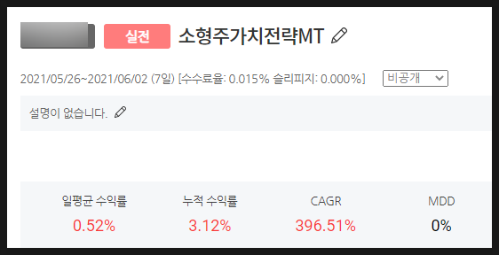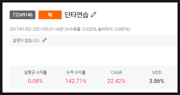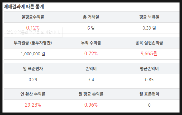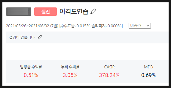 우선 이 단타 전략의 백테스팅 결과와 함께 실전매매 결과를 비교해보자.