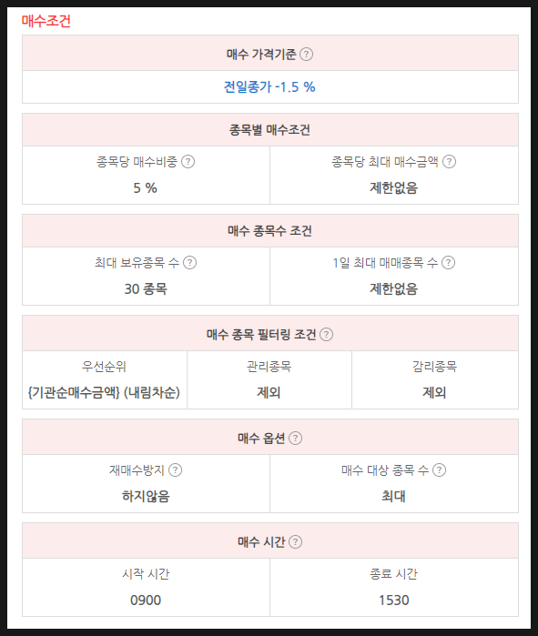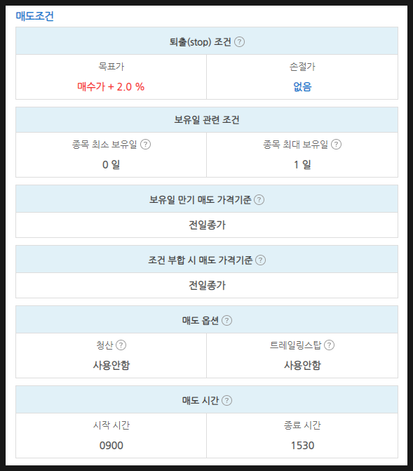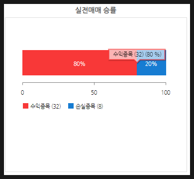 실전에서 승률이 80%다ㅋㅋ 아주 놀라운 승률이다. 매수만 되면 목표가에 도달하는 경우가 많아서 승률이 높은 것이다. 더 돌려보고 싶은 마음도 있는데, 이 전략을 제외하는 가장 큰 이유는 매매 대상 종목들이 수급이 좋은 종목들이고 최근 추세가 좋은 종목들이라, 시초가 부터 상승하는 종목은 지정한 가격에 매수가 잘 안되기 때문이다. 하루에 현금의 30~50% 정도만 회전을 하더라.