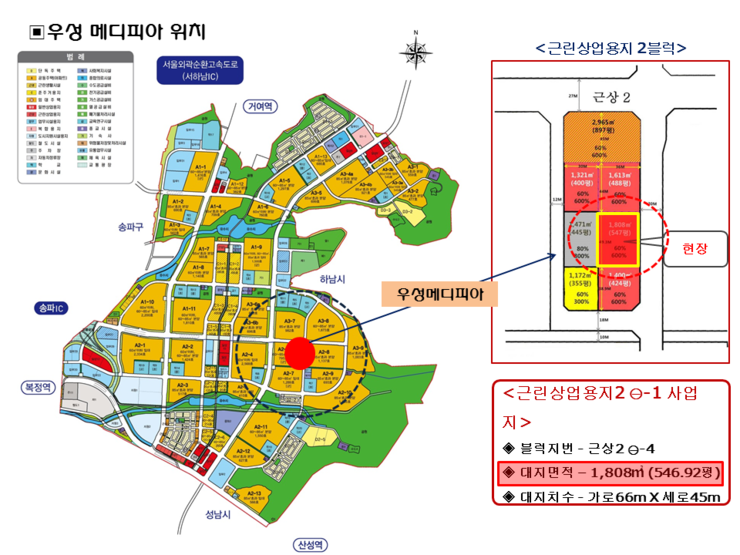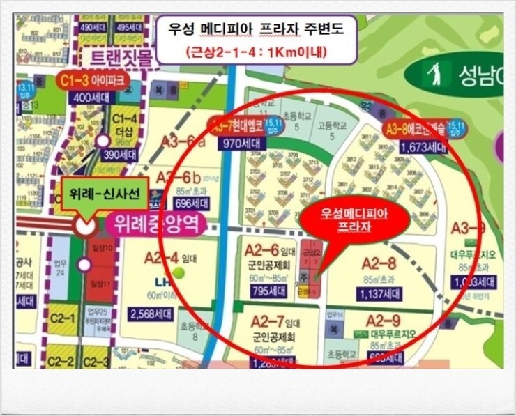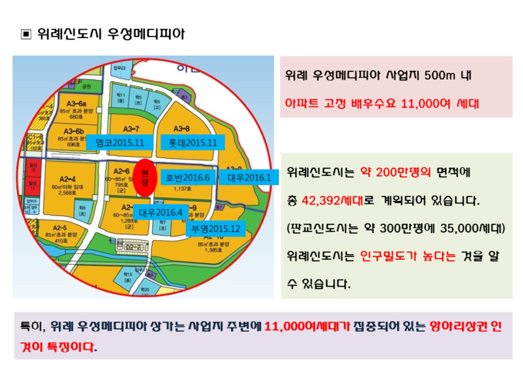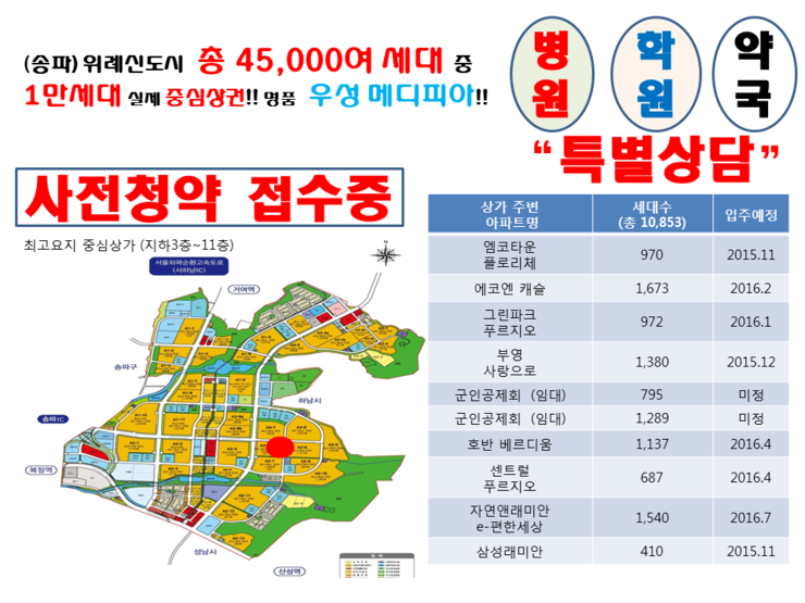 위례 우성메디피아 상가는 15,000여세대 정 중앙에