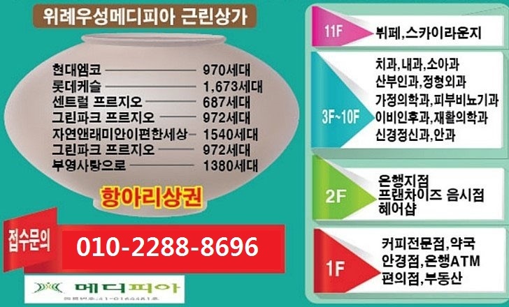 우성메디피아 상가는 주변 15,000여세대의 중앙의 위치하는