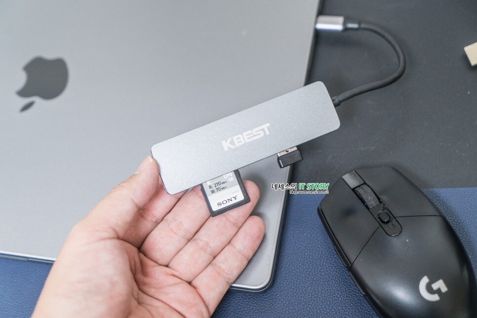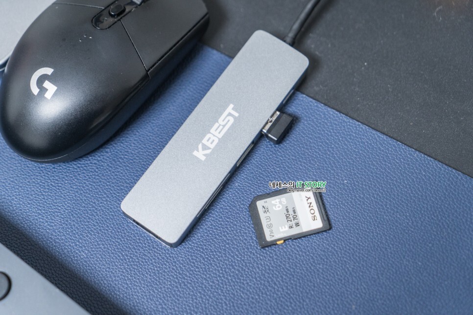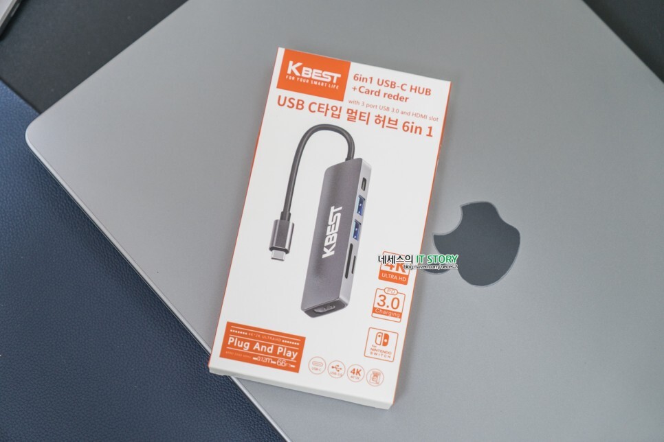 그런데 C타입허브 하나 있으면 아쉬운 확장성도 모두 해결이 되는데요. 오늘은 케이베스트 6in1 멀티허브 사용해 보았습니다. C타입허브 6in1 제품으로 USB-A 포트는 물론, HDMI, SD카드 슬롯까지 탑재된 제품입니다.