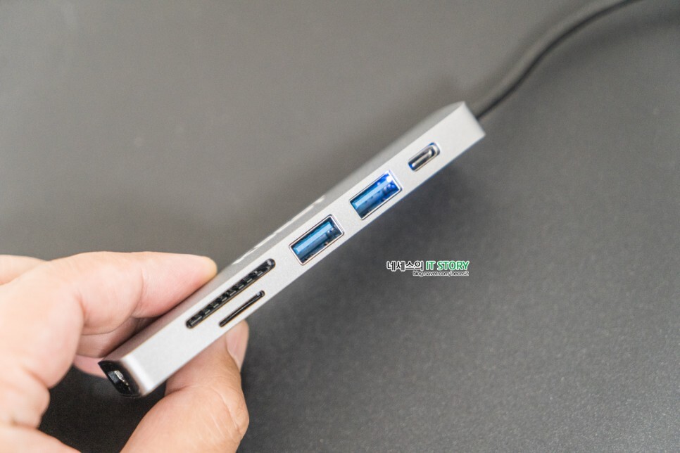 가장 먼저 외형부터 살펴봅니다. 외형의 경우 깔끔한 디자인을 가지고 있으며, 크기가 상당히 작고 가벼운 것이 특징입니다. 6개의 포트가 탑재되어 있음에도 0.8mm 두께로 슬림 하며 크기가 상당히 작기 때문에, 상당히 뛰어난 휴대성을 선사합니다.