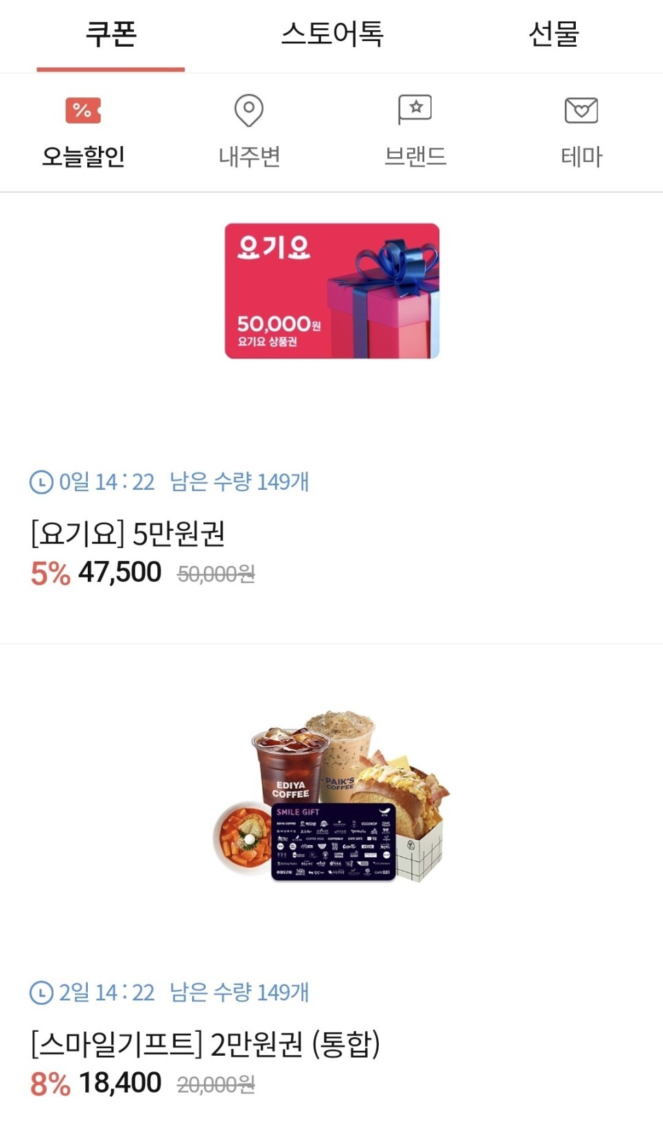 오늘 최대 할인하는 쿠폰들을 볼 수 있어요