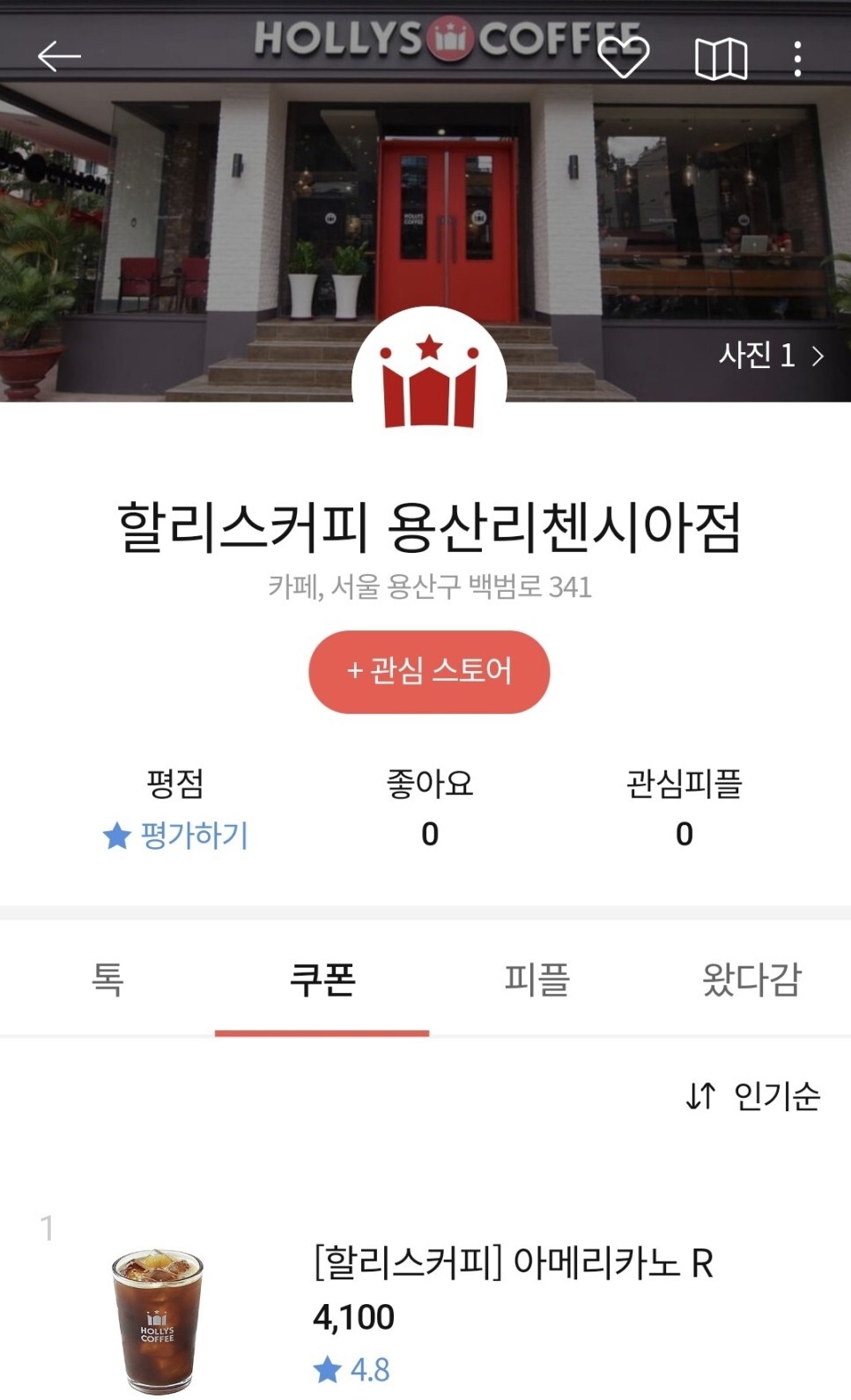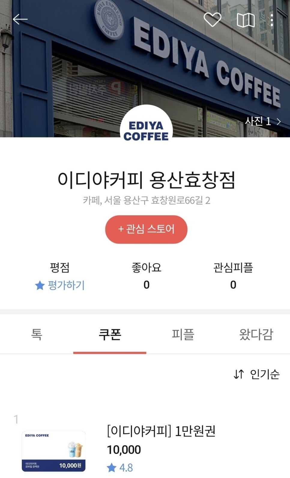받은 쿠폰을 등록하면 일상카페 어플에서